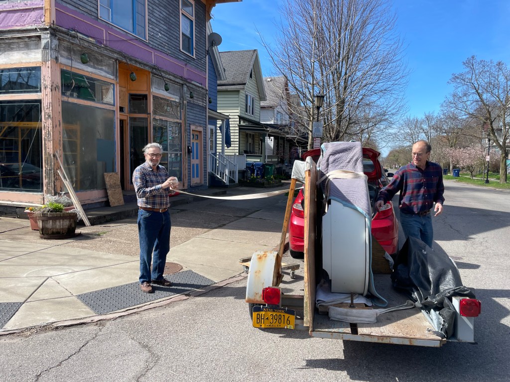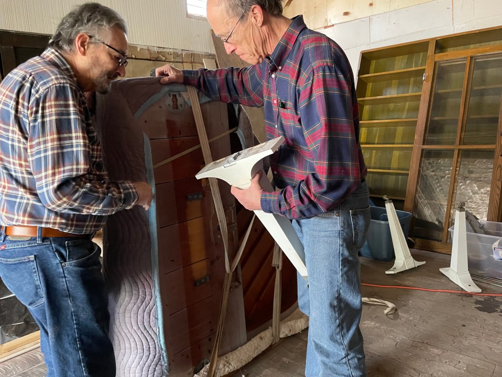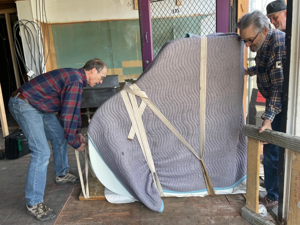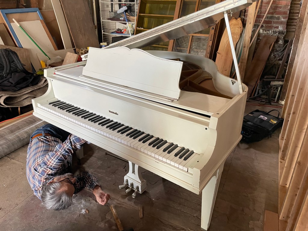 Today we celebrated as our dear friend and faithful piano technician, Bob Sowyrda and his side-kick, Bruce brought over a beautiful, white Baldwin baby grand (generously donated by Patrick Krempholtz at Holliday Hills Golf Course in Holland, NY. It’s 4’8″, but sounds more like 5″7″!) Our friend, Robert Then made the connection for us – thanks again, Bob!