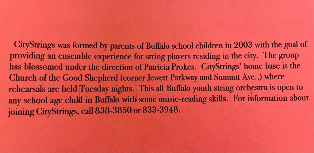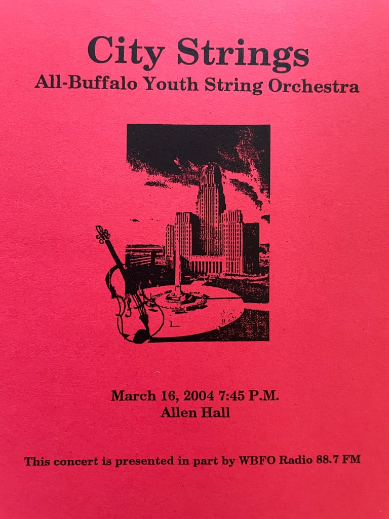 Elise also co-founded City-Strings, Buffalo’s youth string orchestra, pictured here performing at AKG Art Museum in 2003.